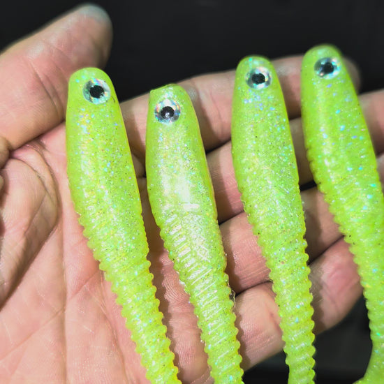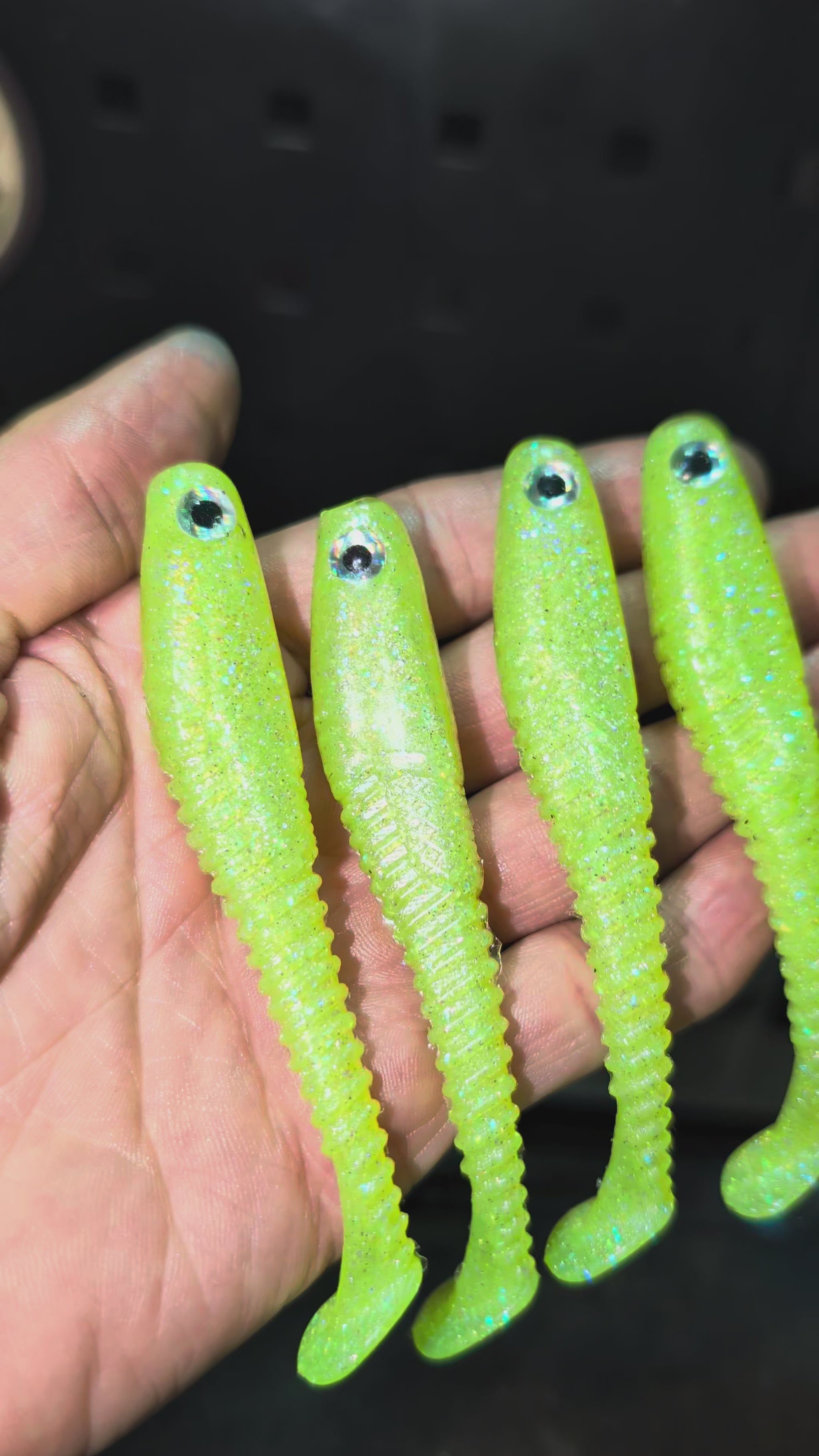 Meet the Yum Yums, the newest premium swimbait designed to trigger aggressive reaction strikes when it matters most. Each bait features a perfect mix of diamond-white and chartreuse, enhanced with fine-grain chartreuse glitter that throws off a natural flash underwater — making it easy for predators to key in from any distance.